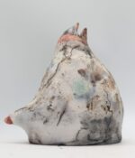 The Bird Bank Collection is crafted using the saggar technique, in which a ceramic piece is slowly freed from its shells formed during firing by hammer and chisel—emerging from them just like a bird hatching from an egg.