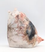 The Bird Bank Collection is crafted using the saggar technique, in which a ceramic piece is slowly freed from its shells formed during firing by hammer and chisel—emerging from them just like a bird hatching from an egg.