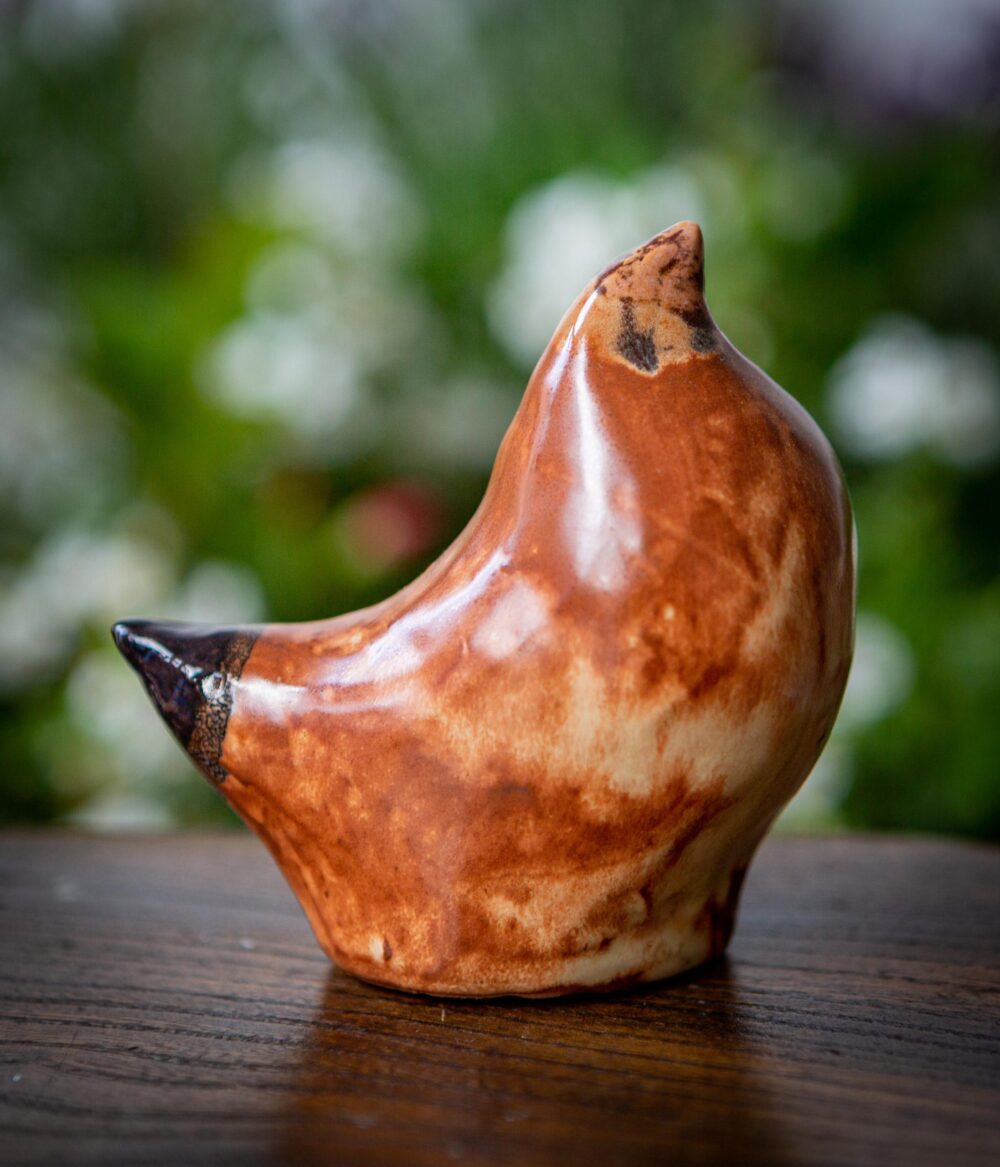 There is a story behind the creation of every Bird of Happiness reflected in the name. Joy was created on a hot summers day and is one of the few Birds of Happinss with wings. She is shaped in the traditional terracotta clay, hand glazed and kiln fired several times.