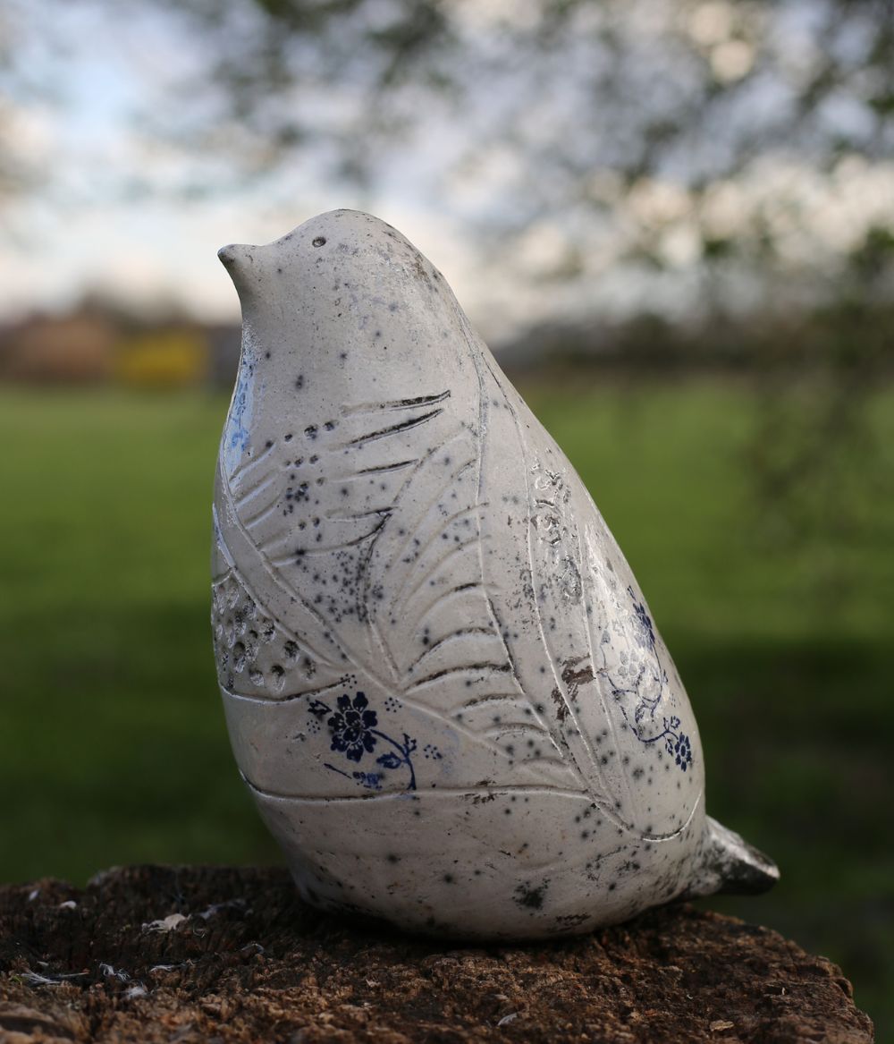 Apstraktna, stilizirana, unikatna keramička ptica. Modelirana, obrađena i glazirana ljudskom rukom. Nekoliko puta pečena u specijalnoj peći za keramiku na temperaturi od preko tisuću stupnjeva. Završno paljena u drevnoj raku tehnici.