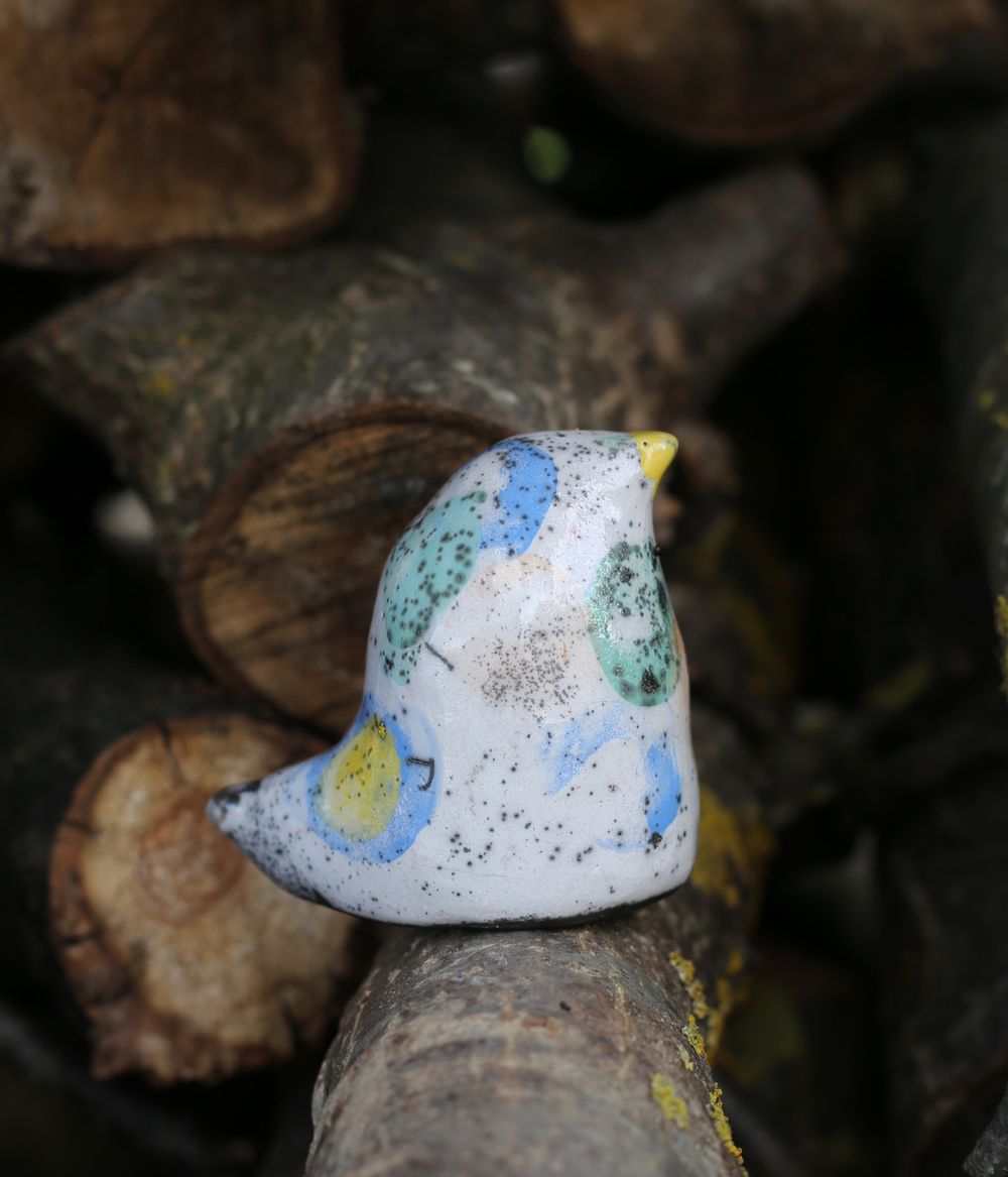 Apstraktna, stilizirana, unikatna keramička ptica. Modelirana, obrađena i glazirana ljudskom rukom. Nekoliko puta pečena u specijalnoj peći za keramiku na temperaturi od preko tisuću stupnjeva. Završno paljena u drevnoj raku tehnici.