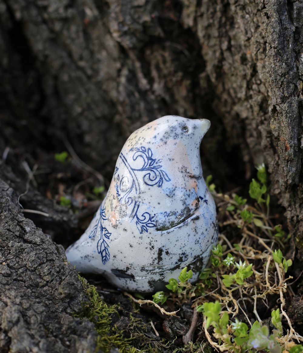 Apstraktna, stilizirana, unikatna keramička ptica. Modelirana, obrađena i glazirana ljudskom rukom. Nekoliko puta pečena u specijalnoj peći za keramiku na temperaturi od preko tisuću stupnjeva. Završno paljena u drevnoj raku tehnici.