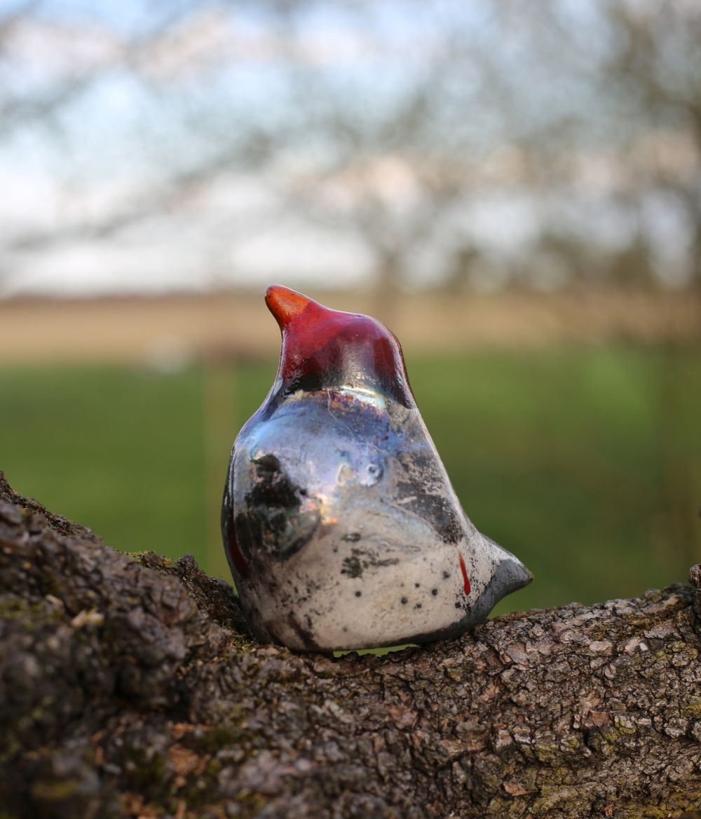Apstraktna, stilizirana, unikatna keramička ptica. Modelirana, obrađena i glazirana ljudskom rukom. Nekoliko puta pečena u specijalnoj peći za keramiku na temperaturi od preko tisuću stupnjeva. Završno paljena u drevnoj raku tehnici.