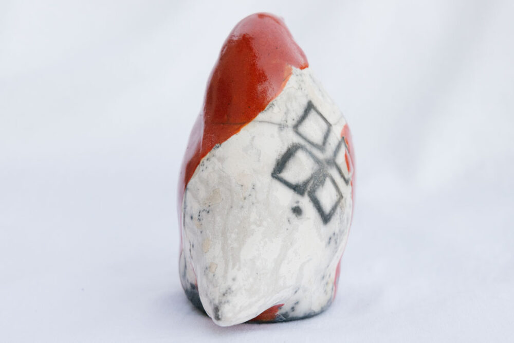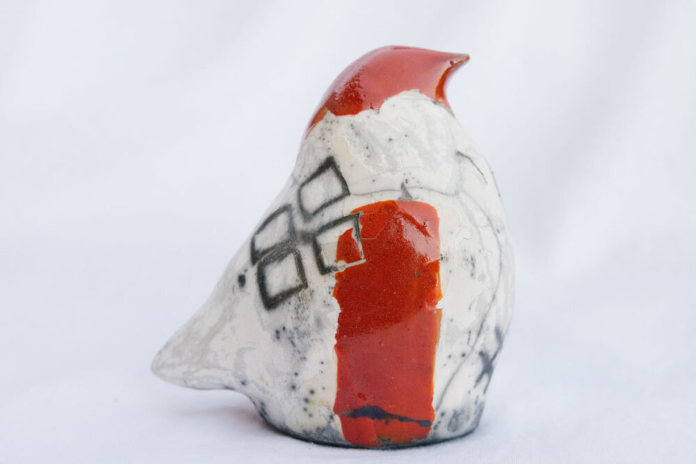 Apstraktna, stilizirana, unikatna keramička ptica. Modelirana, obrađena i glazirana ljudskom rukom. Nekoliko puta pečena u specijalnoj peći za keramiku na temperaturi od preko tisuću stupnjeva. Završno paljena u drevnoj raku tehnici.