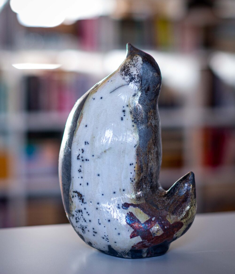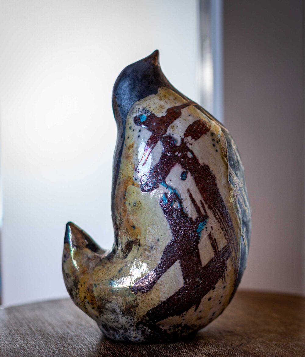 Ptica sreće uspješnica je posbna po tome što na sebi ima izrezbarene simbole uspjeha. Paljena je u varijanti drevne raku tehnike.