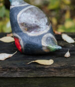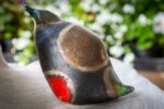 KERAMIČKA PTICA SREĆE br 193 ŽAR PTICA jedna je od najkrupnijih Ptica Sreće. Kreirana tokom dugog toplog ljeta priziva osjećaj uživanja u slobodi djetinjstva. Modelirana u mekanoj šamotnoj glini i najprije sušena na toplom ljetnom suncu a potom paljena u specijalnoj peći za keramiku na temperaturi od oko tisuću stupnjeva.